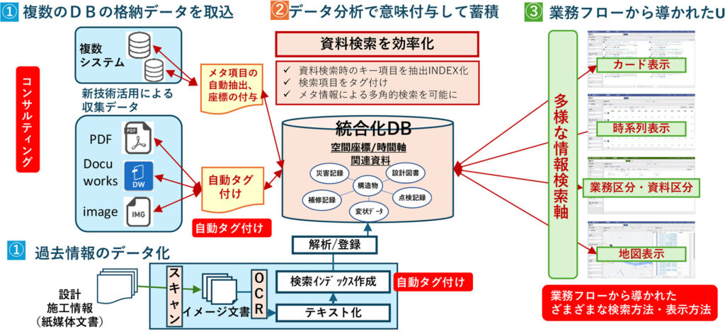 - 技術資料、業務報告書、手書き図面など様々な資料を正確にテキスト化&タグ付け