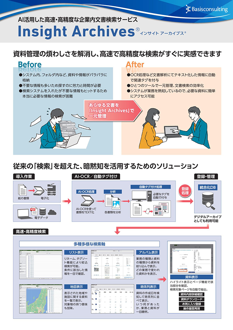 「Insight Archives」は各社専門性の高い資料管理に使用され、利用効果を実感していただいています。