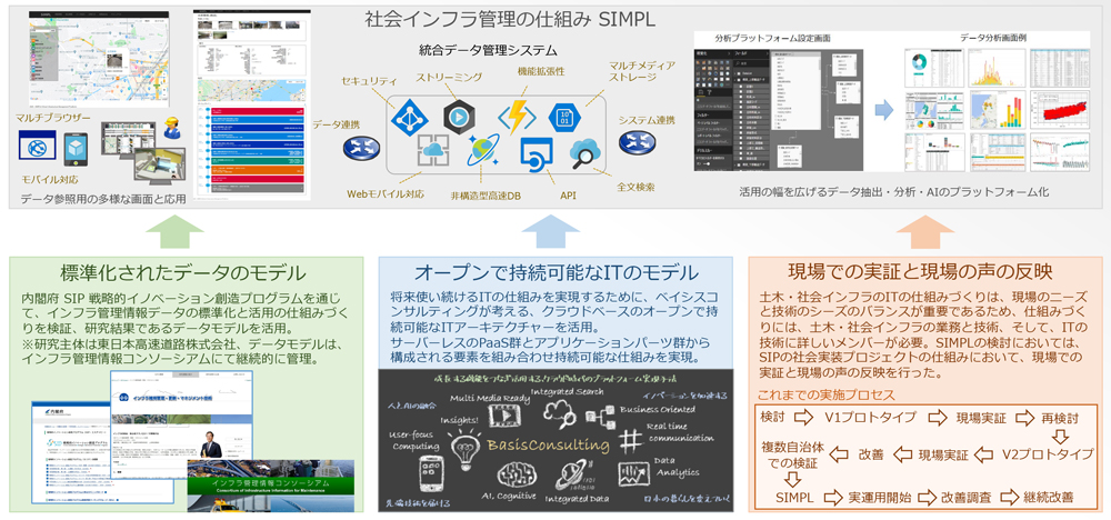ベイシスコンサルティングでは、これまで、様々な社会インフラの管理に関する研究やシステム化を進め、業務改革(DX)を推進してきました。昨今、発生する災害件数が増えてきており、社会インフラ管理においても、防災・減災の重要度は飛躍的に高くなっています。そこで、ベイシスコンサルティングの社会インフラ管理に関する技術やナレッジを中核にして、防災・減災に活用できる仕組みの実現を目指す、これが、ベイシスコンサルティンングの SIMPL の取り組みです。